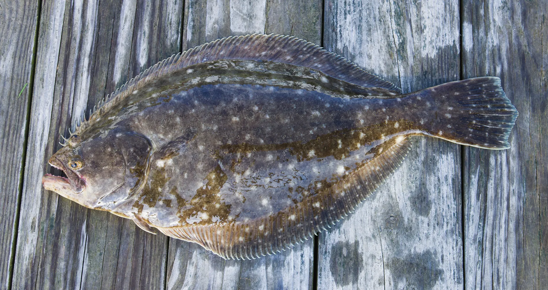 Flounder is a term used to group together dozens of flatfish species. Flounder are common, widespread, bottom-dwellers that are fun to catch, presenting a seemingly simple, yet surprisingly challenging experience. Many flounder species have both eyes on one side of their body and can camouflage themselves to match their habitat and surroundings.