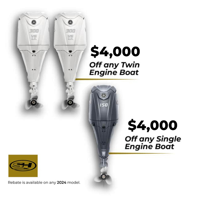 From now until August 31st, 2024 Sea Hunt is offering a summer rebate sale. Buy any new 2024 Sea Hunt with a single or twin set of outboards. Receive $4,000 off any twin or single engine model. Pick yourself out a brand new 2024 Sea Hunt and save now!